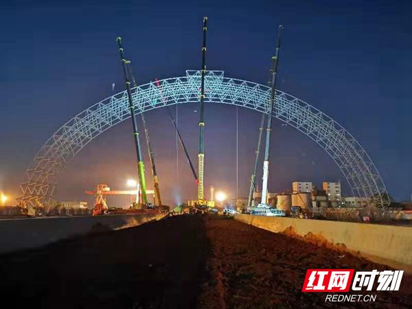 從當天早上8點到晚上7點,該網架吊裝歷時11個小時完工,湖南省航務公司水工分公司經理方明科介紹說,“這是湖南省內首例類似高空作業項目,各個環節須密切配合,容不得一點差錯!”